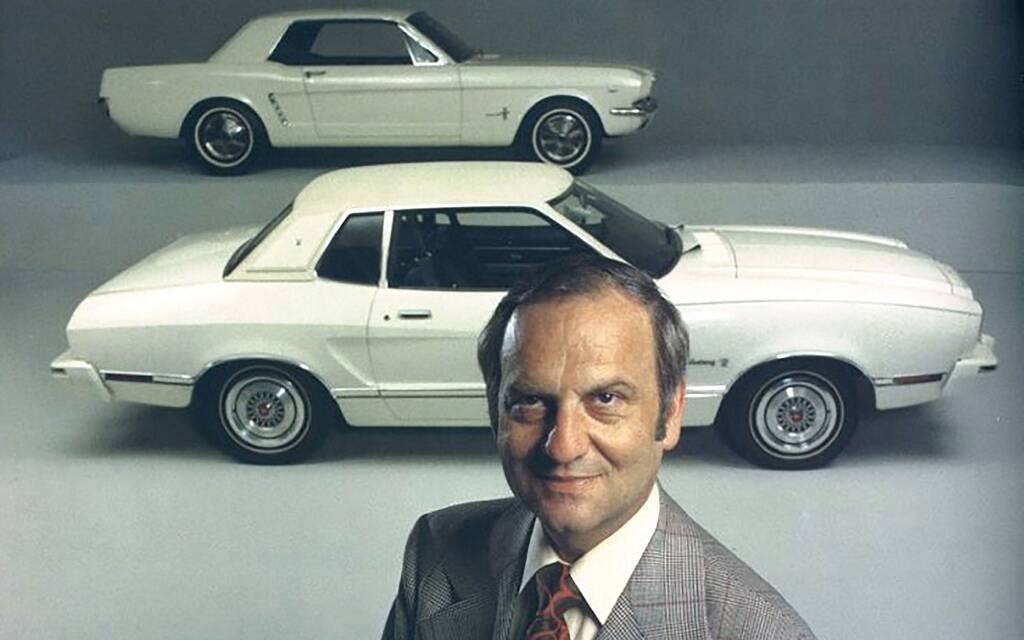 Lee Iacocca (en photo ci-dessous) est considéré comme le père spirituel de la Mustang. C’est lui et les membres de l’informel comité Fairlane qui établissent les bases de ce qui allait devenir le premier pony car de l’histoire. Présentée le 17 avril 1964, elle connaîtra un succès phénoménal. Un tout nouveau modèle est prévu pour 1971 mais ce n’est pas Iacocca qui prendra les décisions le concernant. En effet, Semon « Bunkie » Knudsen est engagé comme président de la Ford Motor Company par Henry Ford II en février 1968. Cet ancien cadre de General Motors a, entre autres, sauvé Pontiac à la fin des années 50 et dirigé Chevrolet dans les années 60. Déçu de ne pas avoir obtenu la présidence de GM, il répondra favorablement à l’offre de HF II. À partir de là, Knudsen et Iacocca vont être en conflit permanent. C’est Knudsen qui décidera de l’orientation de la Mustang 1971, ce qui déplaira au plus haut point à Iacocca, qui la traitera de « gros cochon » dans son autobiographie. Dans ce livre, il règle évidemment ses comptes avec Knudsen, qui sera finalement renvoyé de chez Ford en septembre 1969, mais il n’a pas tort.