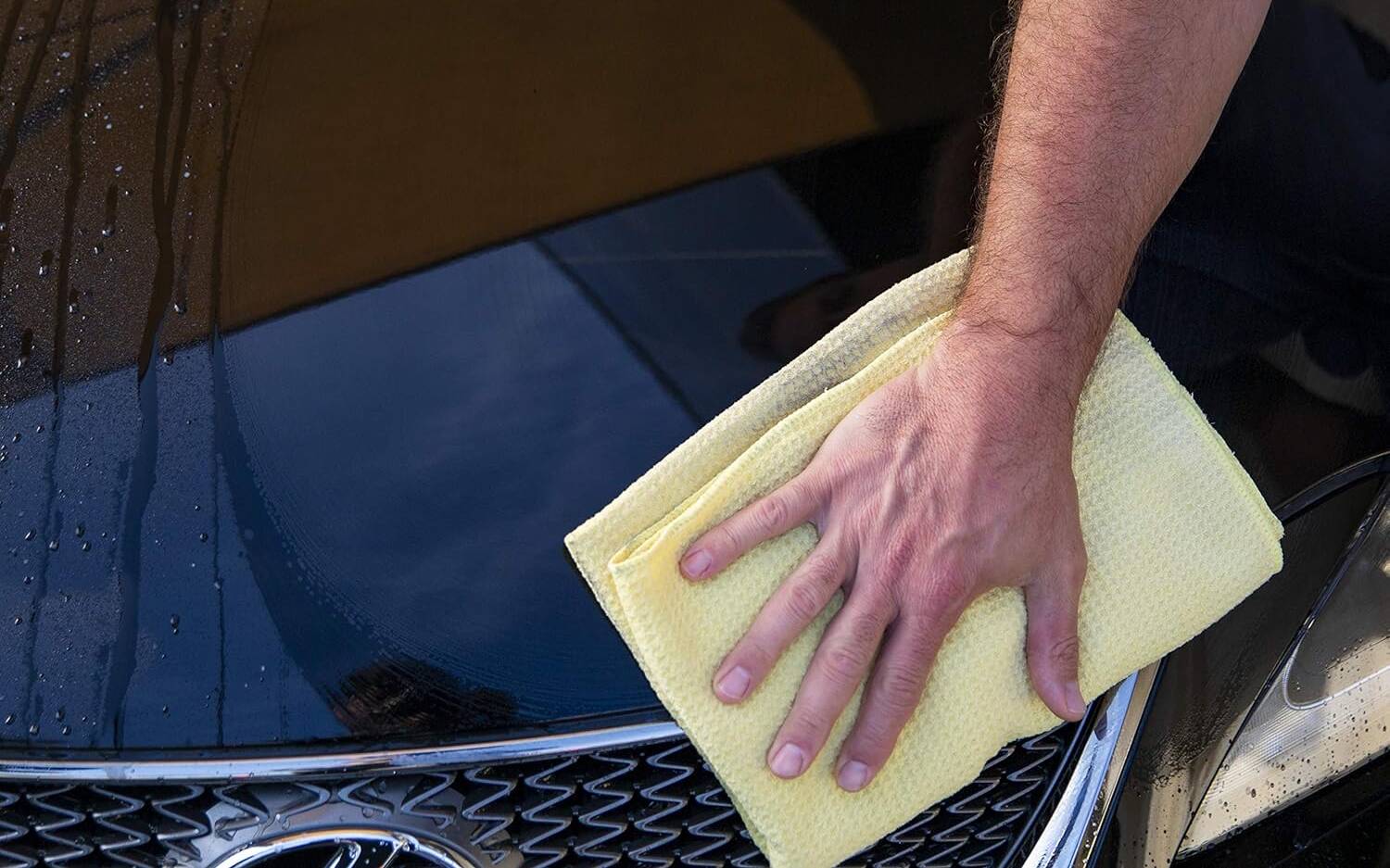 En commençant par le toit, utilisez un fort débit d'eau pour rincer le véhicule une deuxième fois, ce qui aidera à répandre le produit sur tout l'extérieur. Puis, séchez le véhicule avec une serviette de séchage en microfibre de qualité. Pour les finitions négligées, étalez manuellement la cire céramique avec une éponge de lavage en mousse après le lavage, mais avant le rinçage. Cette étape formera une base initiale pour un maximum de perles.