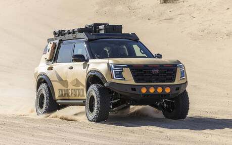 Dans le premier cas, l’Armada se transforme en patrouilleur du désert et véhicule de soutien pour des événements et des épreuves hors route. Basé sur le modèle Pro-4X et rendant hommage au Patrol vendu dans le monde depuis les années 1950, il adopte une suspension de course à grand débattement, des ailes élargies et des roues sur mesure NISMO AXIS de 18 pouces chaussées de pneus Yokohama Goelandar M/T G003 de 37 pouces.