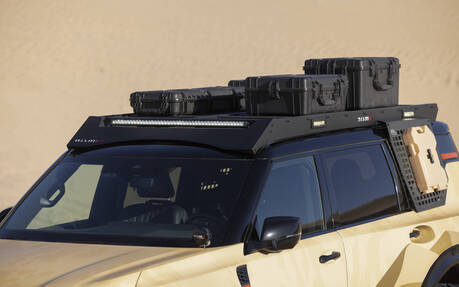 Puis, étant donné que le Dune Patrol est conçu pour les expéditions prolongées loin des points de ravitaillement, Nissan l’a doté de solutions de rangement et de fixation, à l'intérieur comme à l'extérieur, pour tout l'équipement essentiel : caisses de toit, panneaux MOLLE pour bidons de carburant et d'eau, compresseur d'air embarqué et même une antenne radio longue portée.