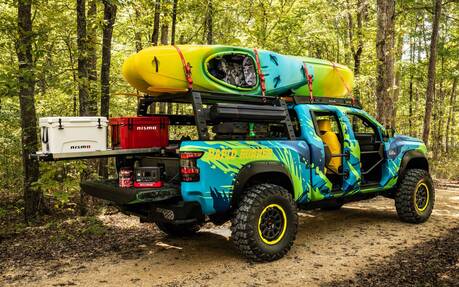 Le Frontier est un véhicule que Nissan aime bien modifier pour le Salon de la SEMA. Cette année ne fait pas exception. En fait, c’est le concept Project Trailgater de 2024 qui revient. La différence, c’est que la camionnette idéale pour les fêtes d’avant-match se métamorphose ici en une machine d'aventure pour le kayak en eaux vives, avec l’aide de PowerNation TV.