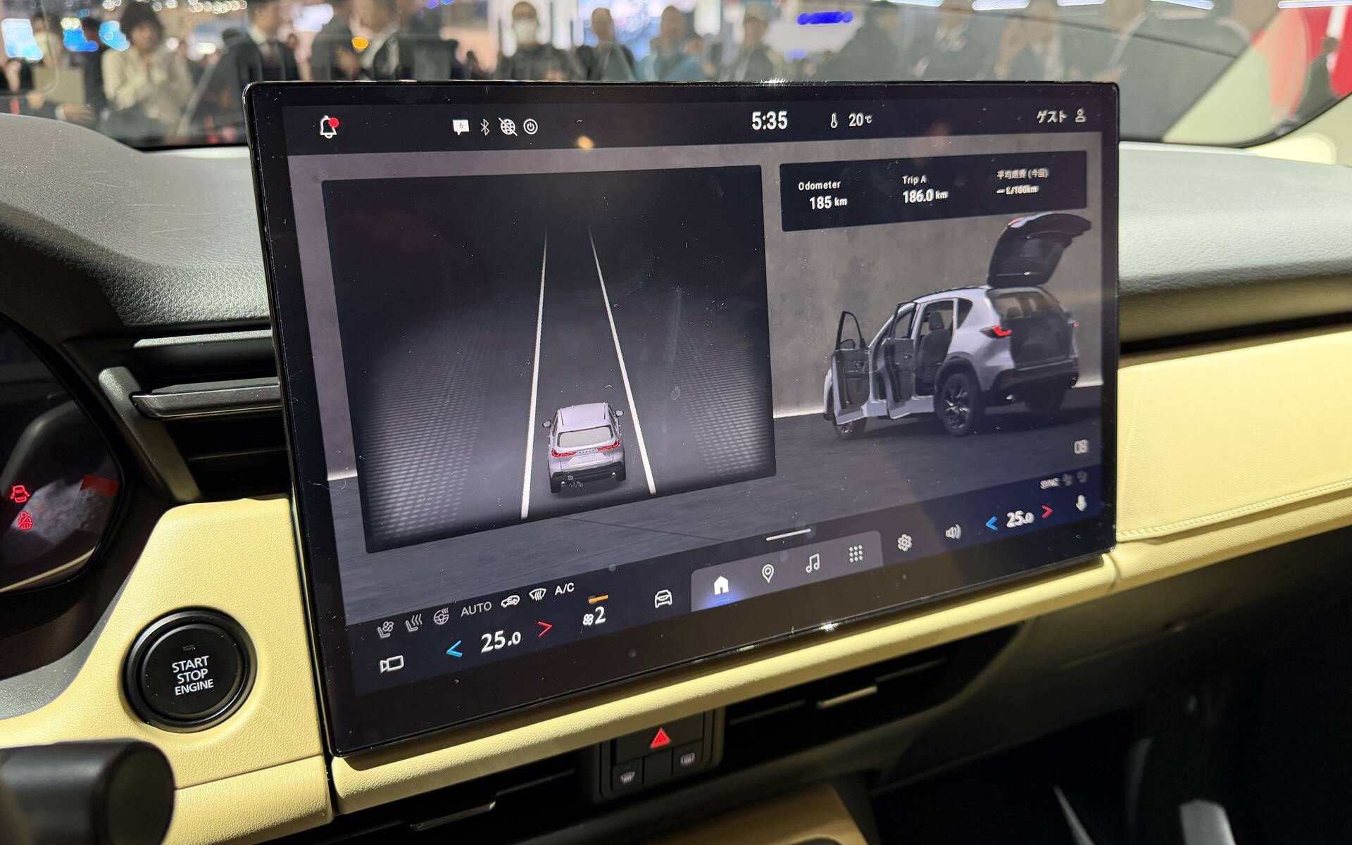 Cette approche n’est pas une surprise puisqu’elle permet à Mazda une grande économie de coût. Et pour cause, l’utilisation d’un logiciel et d’un écran physique emprunté à Toyota. Celui-là même que vous retrouverez notamment dans les camions Tundra et Sequoia. Bien sûr, certaines illustrations diffèrent, mais vous reconnaîtrez cependant le système de caméras à 360 degrés et la disposition de plusieurs éléments. Il est donc vrai que cet écran vient un peu dénaturer ce à quoi Mazda nous avait habitués, sans compter que la technologie utilisée n’impressionne pas par ses qualités graphiques. Néanmoins, plusieurs acheteurs y verront un avantage à l’utilisation, et pourraient être séduits par ce seul élément.