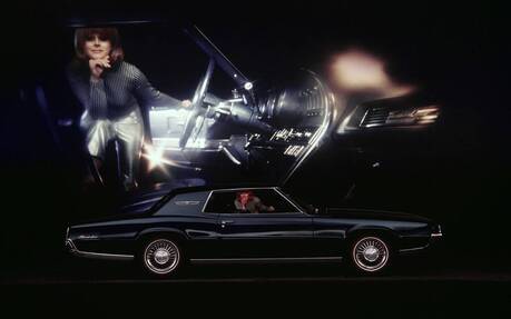 Présentée en 1955, la Thunderbird n’a failli connaître qu’une seule génération. Robert McNamara, alors directeur général de la marque Ford, impose la rentabilité sur toutes les lignes de modèles. Pour sauver la T-Bird, les ingénieurs font appel à une plateforme monocoque et utilisent le site de production des Lincoln. Ce faisant, la Thunderbird passe à 4 places en 1958 et ceci va avoir un impact important sur ses ventes et sur la concurrence, qui mettra du temps à se réveiller, mais qui se réveillera (on pense notamment à la Buick Riviera 1963). Pour 1961, Ford essaye une nouvelle approche stylistique, qui lui réussira plutôt bien. La quatrième génération de 1964 n’en sera qu’une évolution, tant sur le plan des lignes que de la plateforme. Ce modèle connaît un excellent démarrage mais en 1966, les ventes se tassent (voir tableau de production de 1955 à 1971 à la fin du texte). Ford est conscient qu’il va falloir réagir.