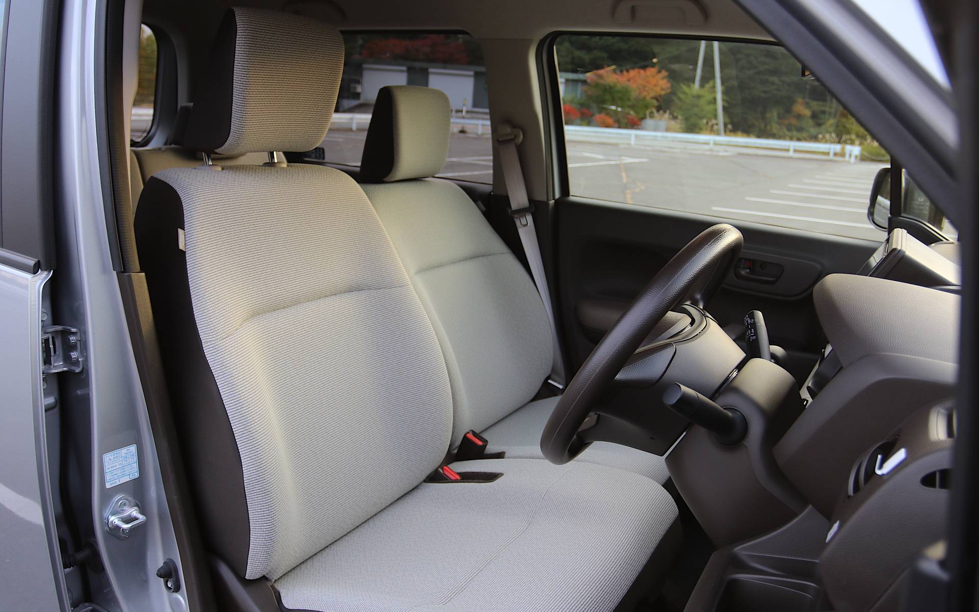 Voiture pragmatique par excellence, une kei a pour mission d’être la plus logeable possible dans un minimum d’espace. Notre Honda ne déroge pas à la règle avec un habitacle étonnamment spacieux pour sa taille, quatre vraies places et un très bon dégagement à la tête. À l’avant, les sièges rappellent les banquettes des bateaux américains (à une échelle différente…) avec une assise très plate mais qui coulisse indépendamment pour le conducteur et le passager.