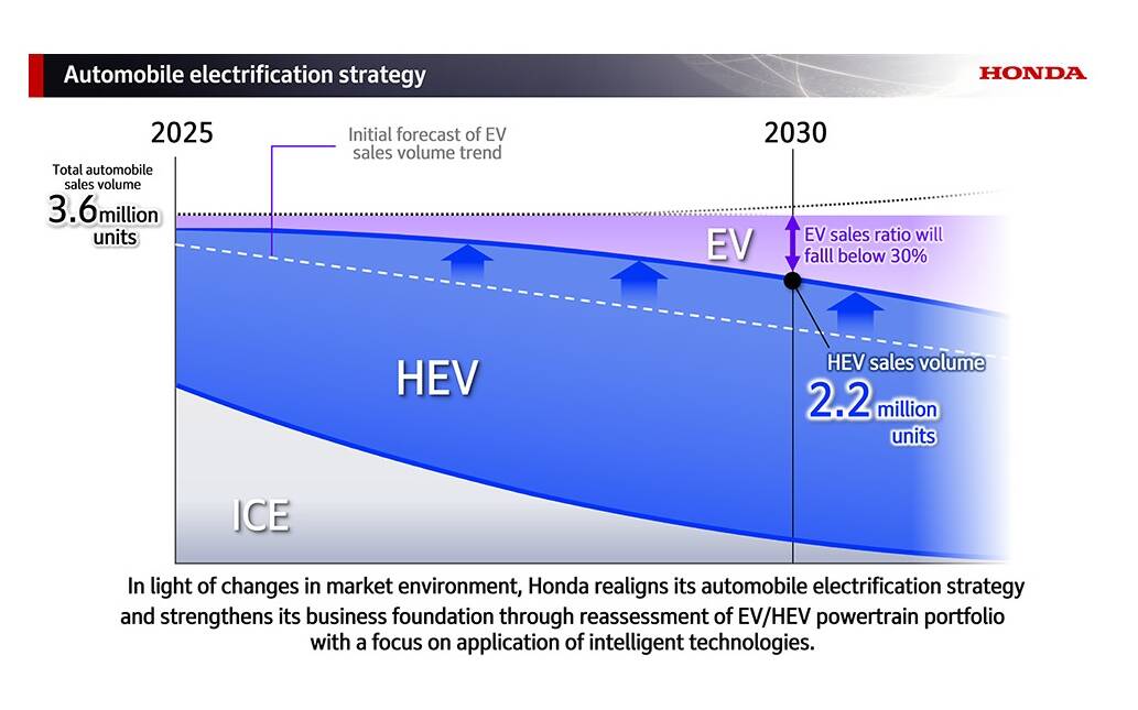 During an annual business briefing in Tokyo on Tuesday, president and CEO Toshihiro Mibe admitted the move is driven by “recent changes in the EV market environment,” both in terms of demand and regulations, as well as the need to realign the direction of the product strategy.