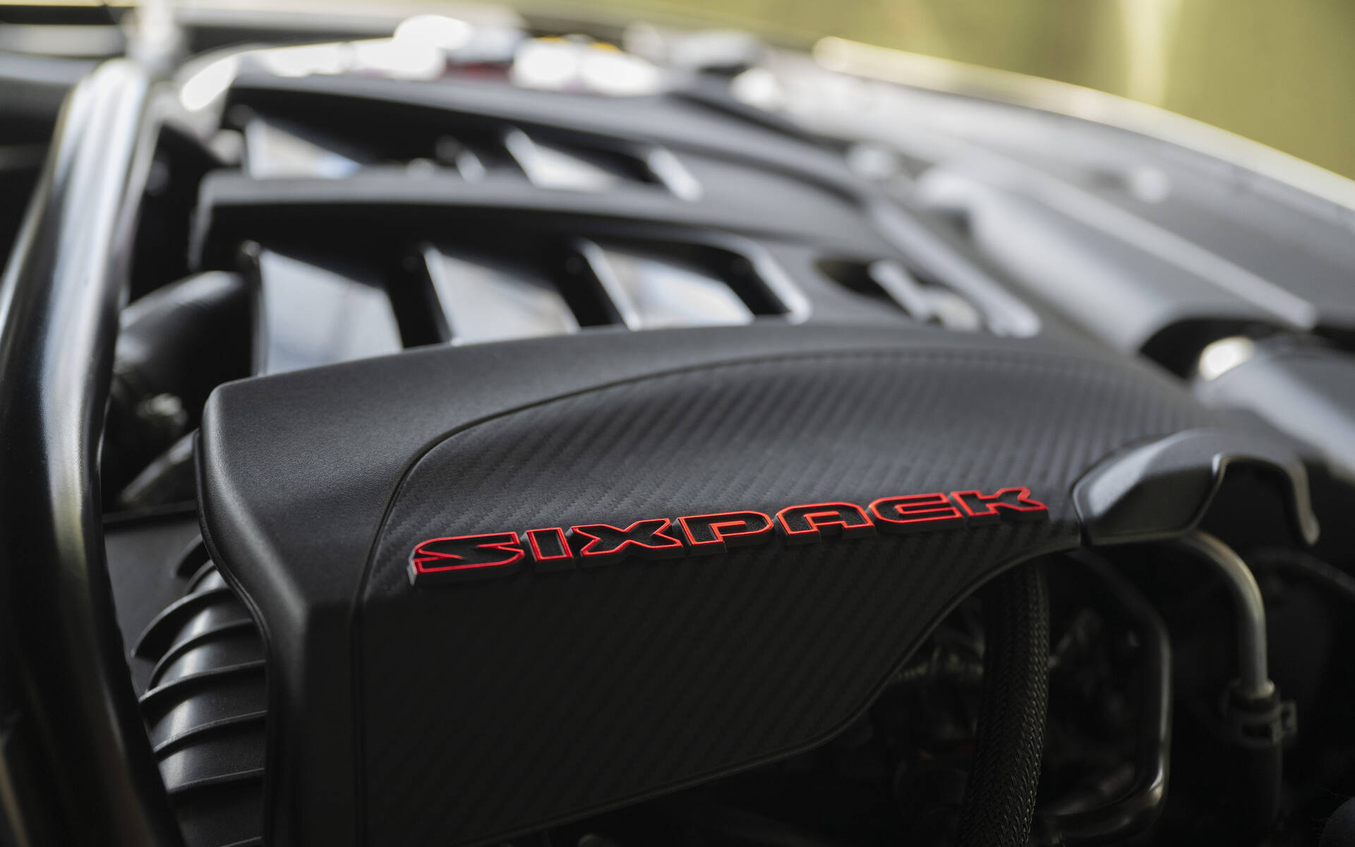 Visually very similar to the electric-powered Daytona model, the gasoline version is distinguished by a few key elements, including the SIXPACK emblems and the prominent front grille. The vehicle's width is further accentuated by its muscular lines and 20-inch wheels adorned with the Fratzog logo.