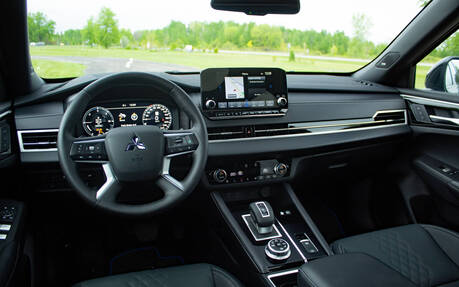 Despite its large size by compact SUV standards, the Outlander PHEV is easy to drive thanks to its generous greenhouse and capable all-wheel drive system. The latter offers seven drive modes to adapt the SUV's handling, whether it's for tackling snow, sand, gravel or more. Such versatility is really appreciated, as the vehicle can go from docile to playful in a second. Heck, even drifting enthusiasts will find something to like. Steering is a bit over-assisted yet precise.
