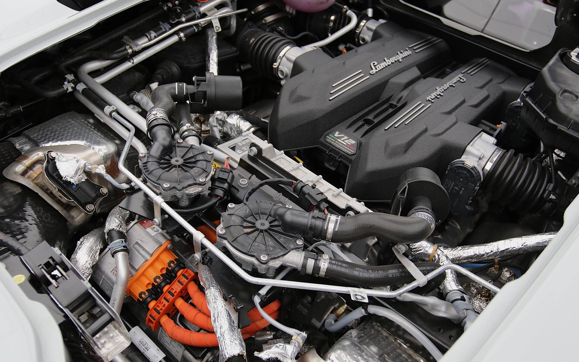 Lamborghini’s top-of-the-line supercar didn’t lose a few cylinders in the process, thankfully. The naturally aspirated 6.5-litre V12 is alive and well behind the cockpit, producing 814 horsepower and 535 lb-ft of torque on its own. It's paired with three electric motors—two in the front and one in the rear—bringing total output to 1,001 horsepower.