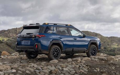 Next up is the Outback Wilderness, which is more versatile and more rugged but also not a pretty sight with all that cladding up front. The all-inclusive price is $51,863, a $3,900 increase over 2025. Beyond styling, this model stands out with 17-inch wheels shod with all-terrain tires, additional skid plates, an improved X-Mode system, an off-road-tuned suspension with electronic dampers, not to mention sharper steering and all-weather, soft-touch seating surfaces with a geometric pattern.