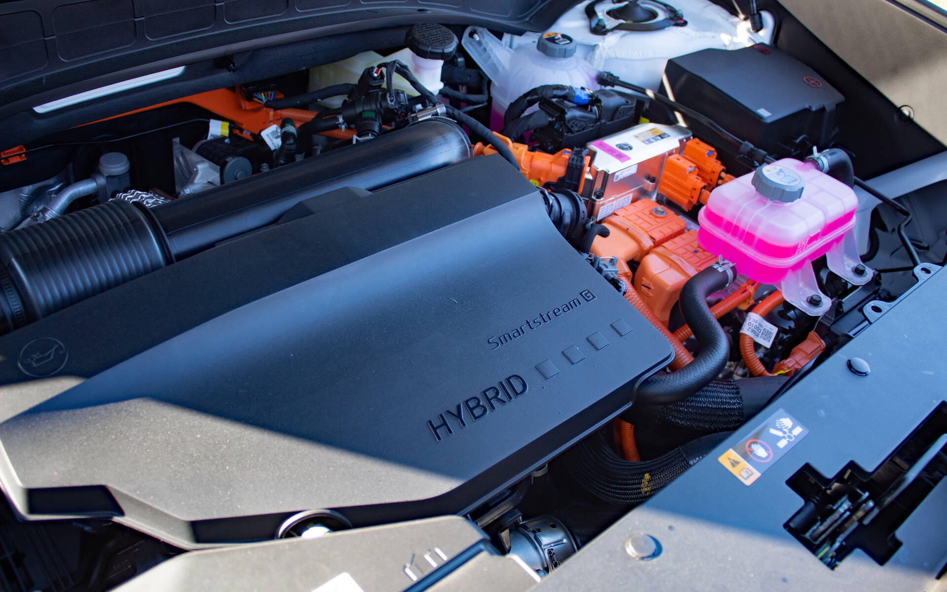 The hybrid pairs a turbocharged 2.5-litre 4-cylinder engine with two electric motors. Together, they produce 329 horsepower and 339 lb-ft of torque—much more impressive numbers. And despite the transmission having two fewer gears, throttle response is instantaneous, which results in dynamic acceleration off the line and when passing slower vehicles. The whole system doesn’t sound so great when pushed, however.