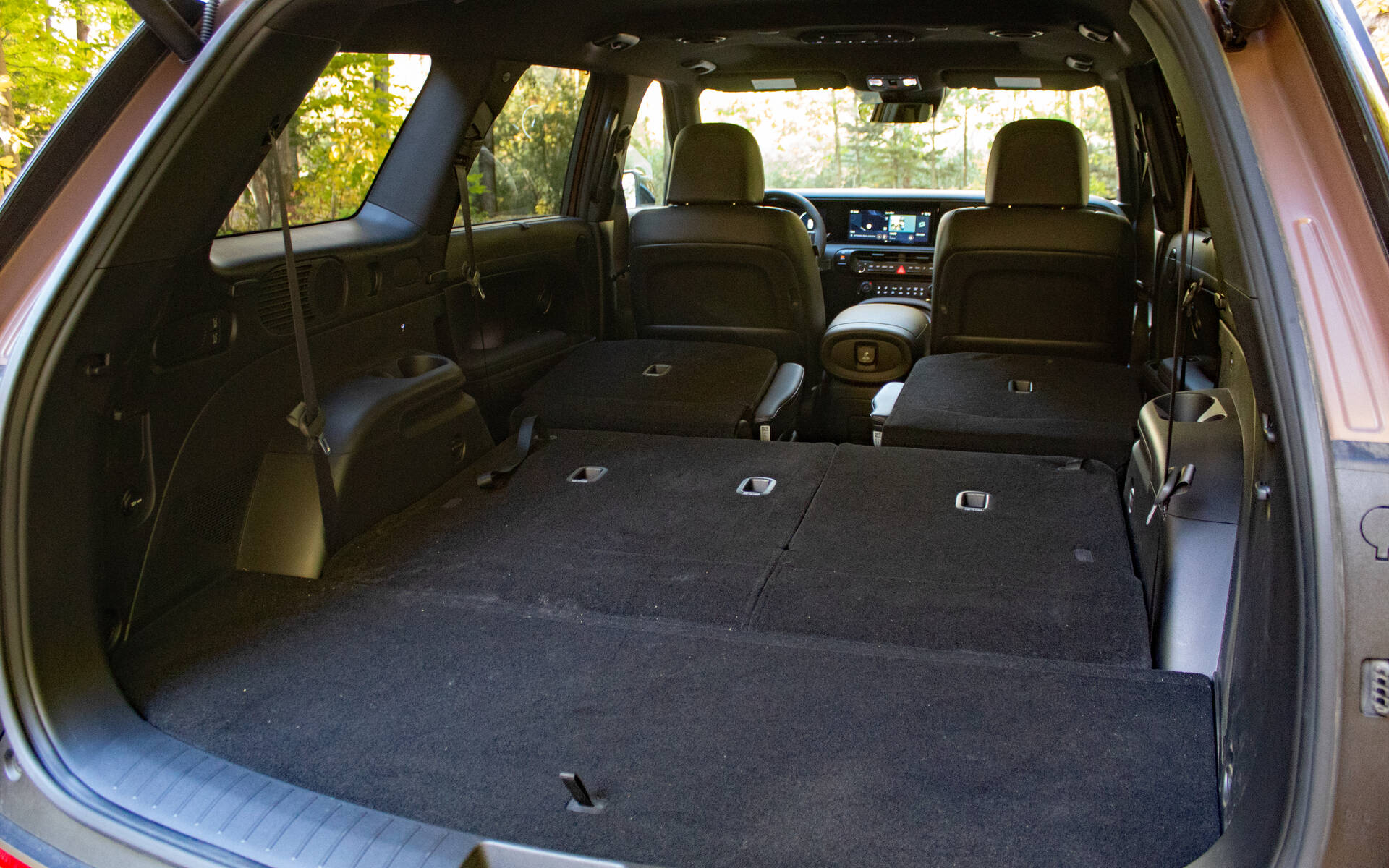 Staying in the tech department, there are seven USB-C ports scattered throughout the cabin, while the front row includes a wireless charging pad for smartphones and wireless Apple CarPlay and Android Auto. Except for the base Preferred Trend model, which has an 8-speaker audio system, all Palisades offer 14 Bose speakers.