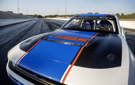 The Charger Hustle Stuff Drag Pak becomes the first race car to bear the SRT Performance badge since the latter was revived in July of this year. The division now oversees all motorsports projects from Stellantis' American brands—from SRT models to Direct Connection parts, not to mention Ram's return to the NASCAR Truck Series in 2026.