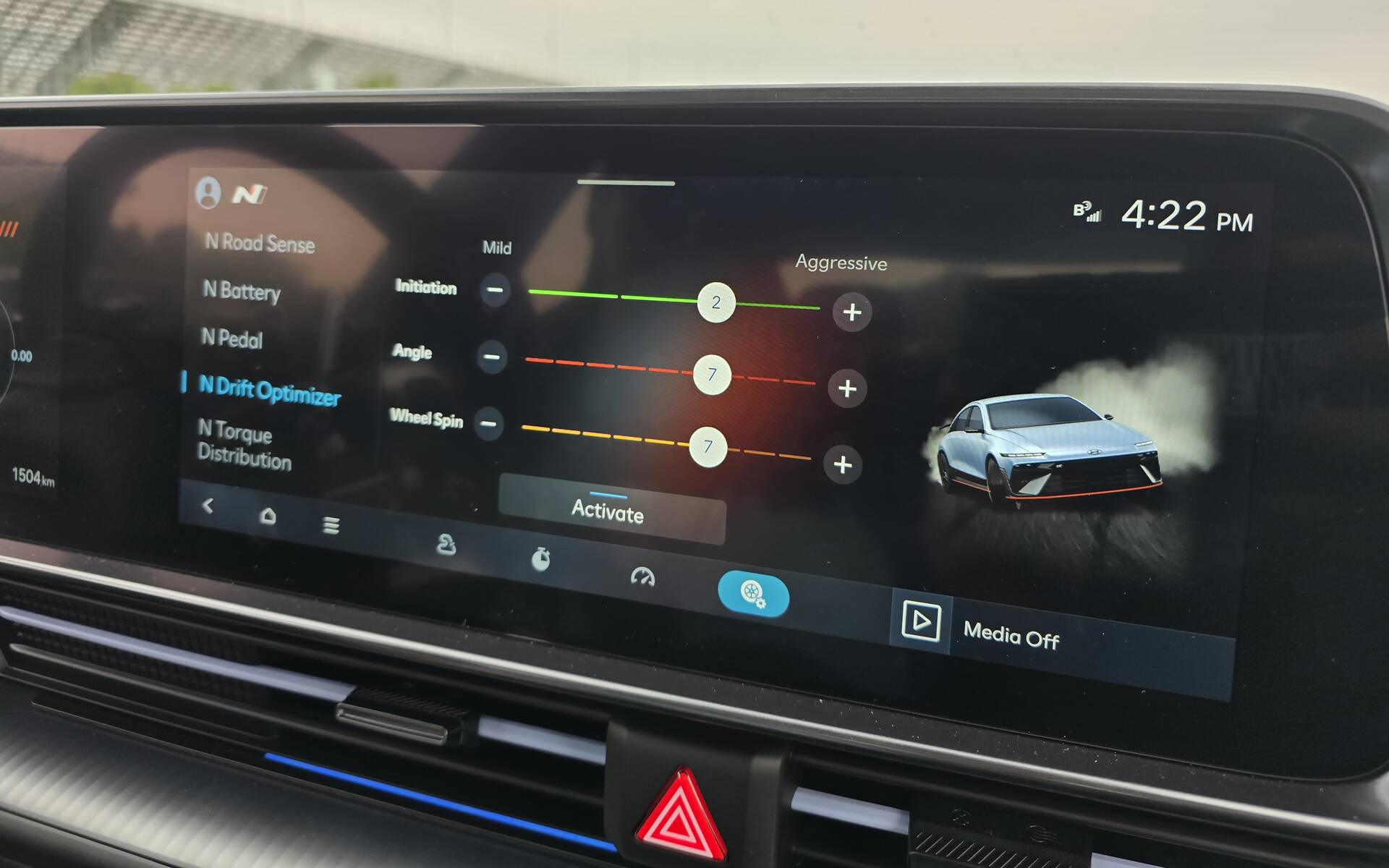 Elsewhere, the IONIQ 6 N's infotainment system is loaded with track-focused applications and other specialized features. N Drift Optimizer, for instance, allows drivers to adjust torque distribution, traction control and stability control in order to optimize performance when drifting on a track.
