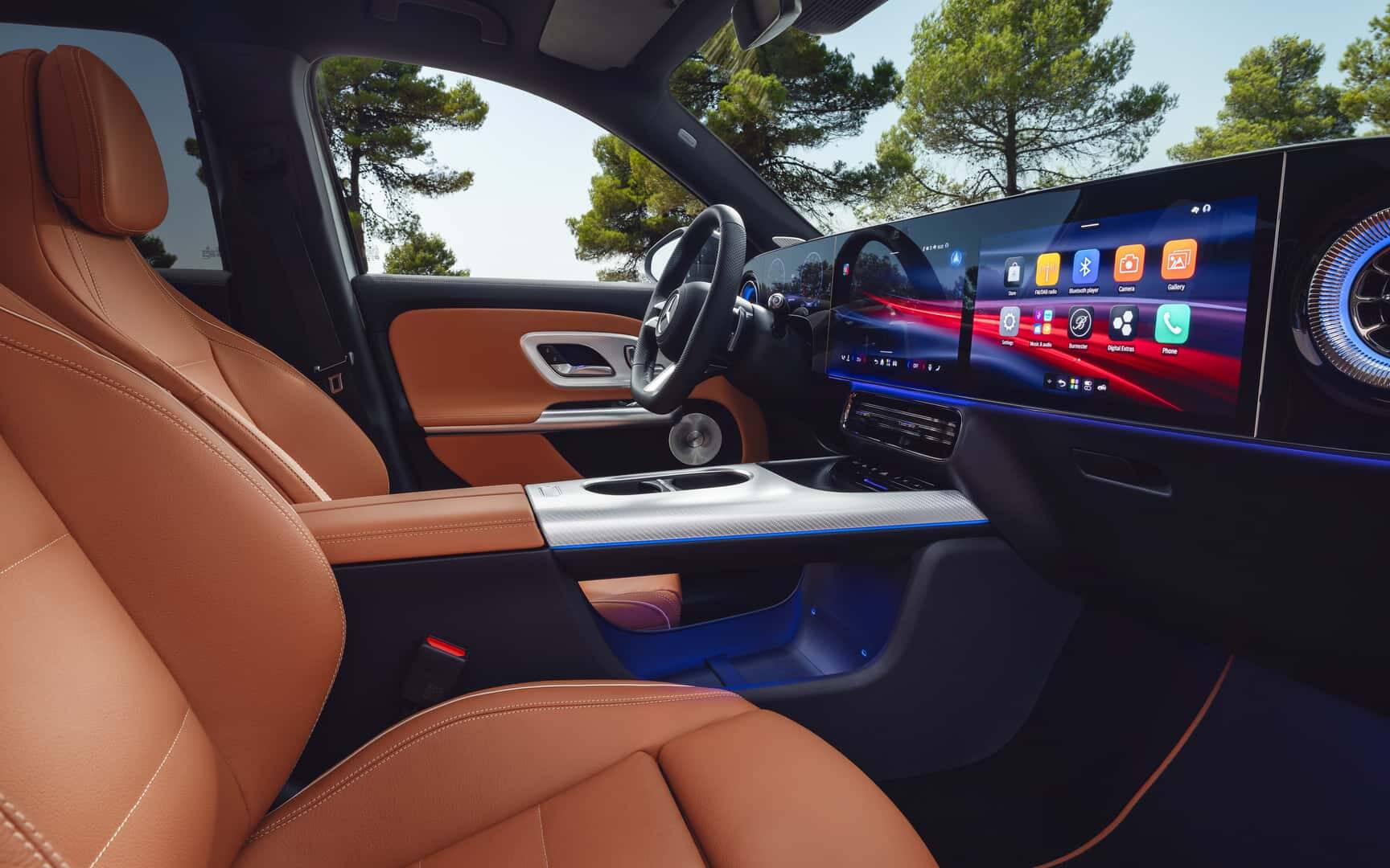 The design is cleaner, particularly where the air vents and main controls are concerned. You'll also notice fewer physical buttons. Furthermore, the contrast in colours and materials is more pronounced compared to the outgoing GLB. The doors are a prime example, with designers having clearly defined the controls, handles, grab bars, armrests and storage compartments.