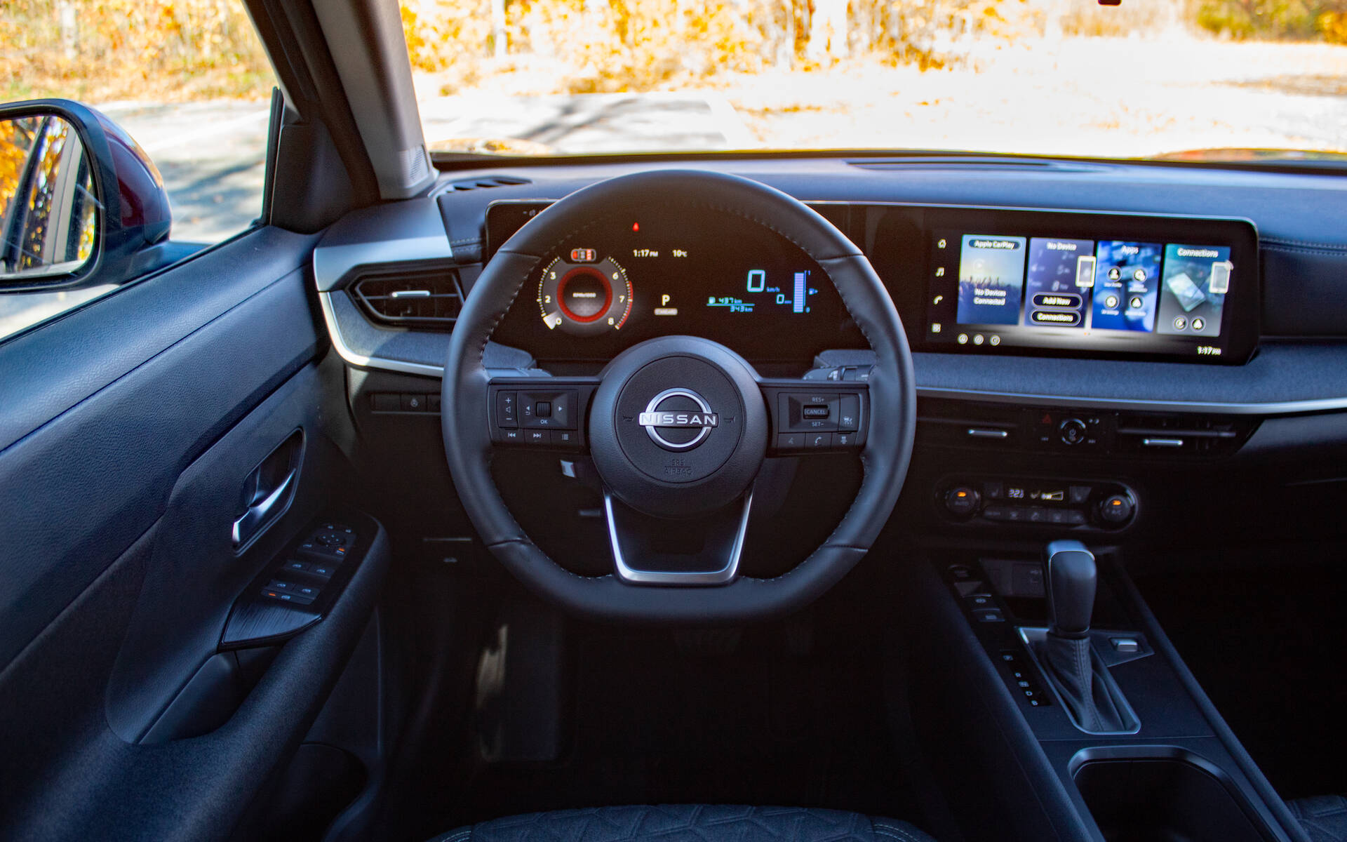 As for infotainment, the display is elegant and user-friendly. Our only complaint is the small size of the buttons on the left and bottom of the screen, making navigating through the menus and settings unnecessarily difficult. By the way, this is a recurring issue in Nissan and Infiniti vehicles featuring this new interface, as we mentioned in our 2026 Nissan LEAF review. Music lovers will definitely get a kick (pun intended) out of the available 10-speaker Bose sound system. Apple CarPlay and Android Auto come standard.