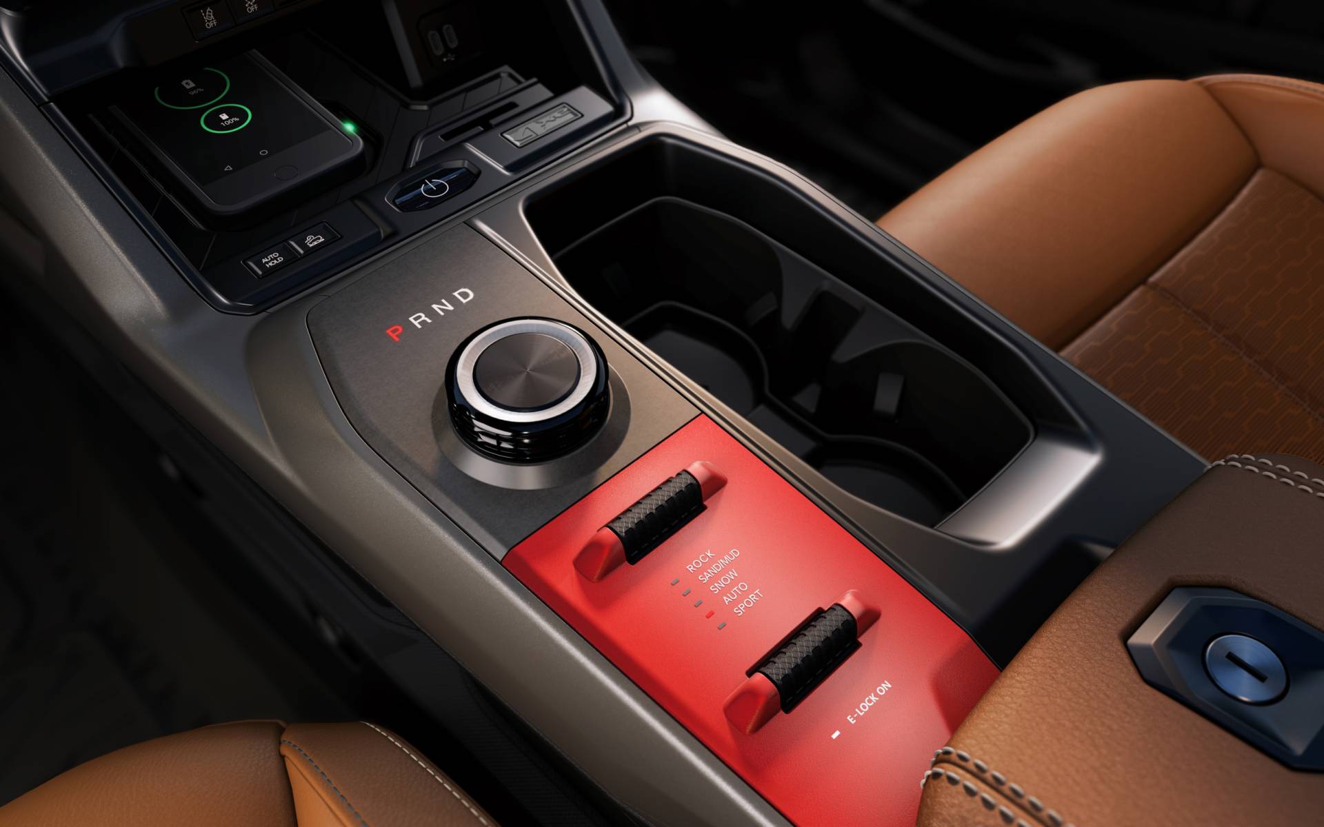In Moab trim, the rear motor uses a 15:1 final drive ratio that delivers a high level of torque multiplication to help the driver power through challenging conditions. The front motor, meanwhile, uses an 11:1 final drive ratio in an open differential design. The front axle includes automatic disconnects at each wheel end to help optimize energy use and range during typical on-road driving conditions when rear-drive propulsion is more efficient.