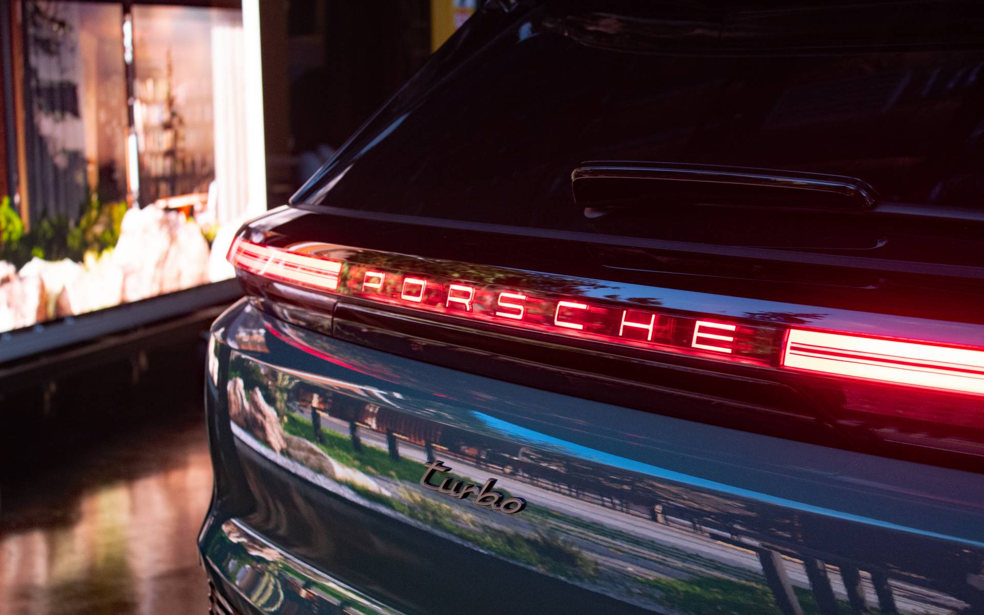 The side view is characterized by frameless doors and flush door handles, but don’t miss the side skirts in a distinctly three-dimensional design, which are painted in Volcanic Grey Metallic in base trim or high-gloss black on the Cayenne Turbo Electric. In the rear, illuminated Porsche lettering on the liftgate is complemented by a 3D-style light strip with animated graphics. Cool. The Turbo features numerous contrasting elements in the exclusive Turbonite colour, such as the Porsche badges, the faces of the alloy wheels and the side window trims.