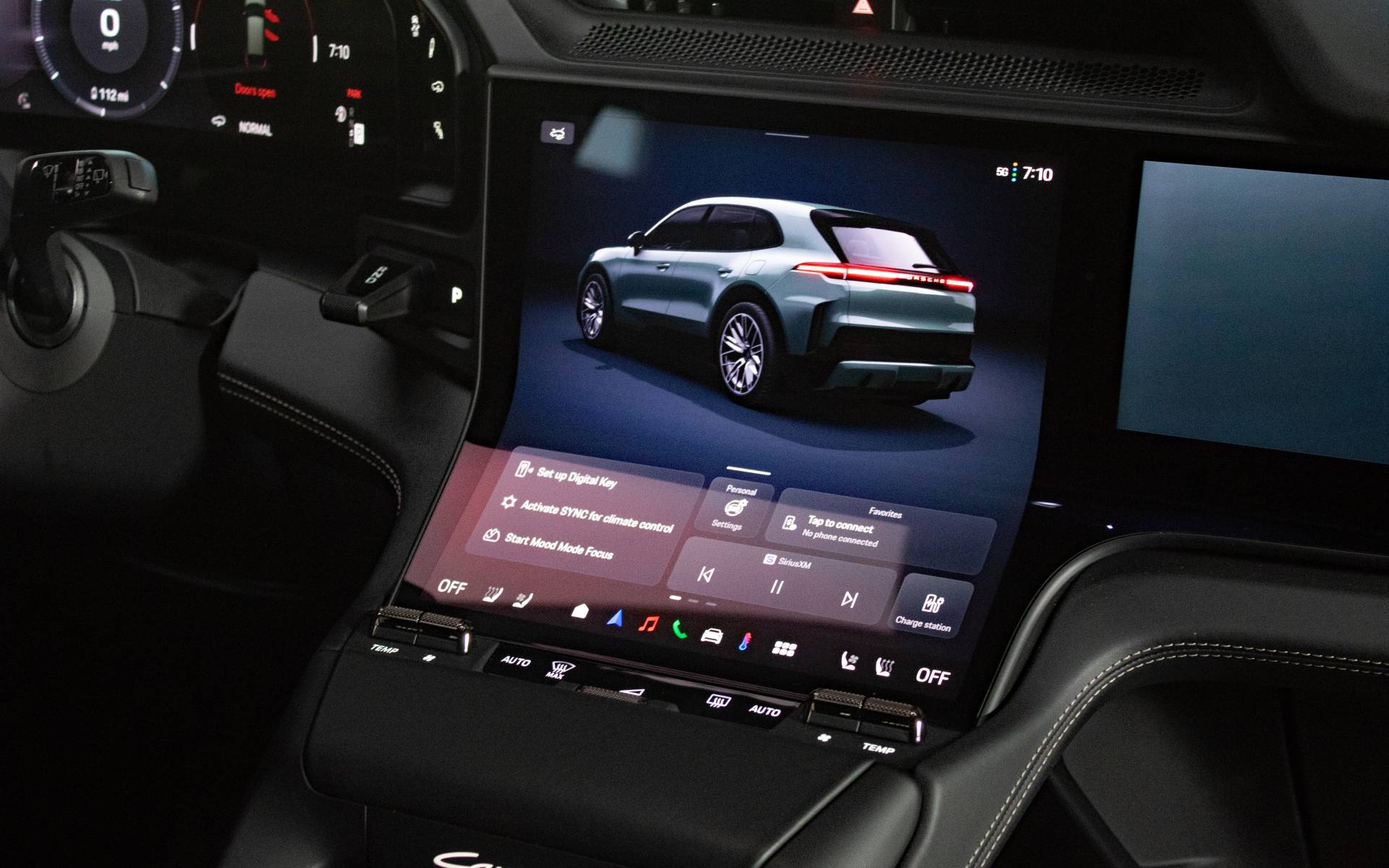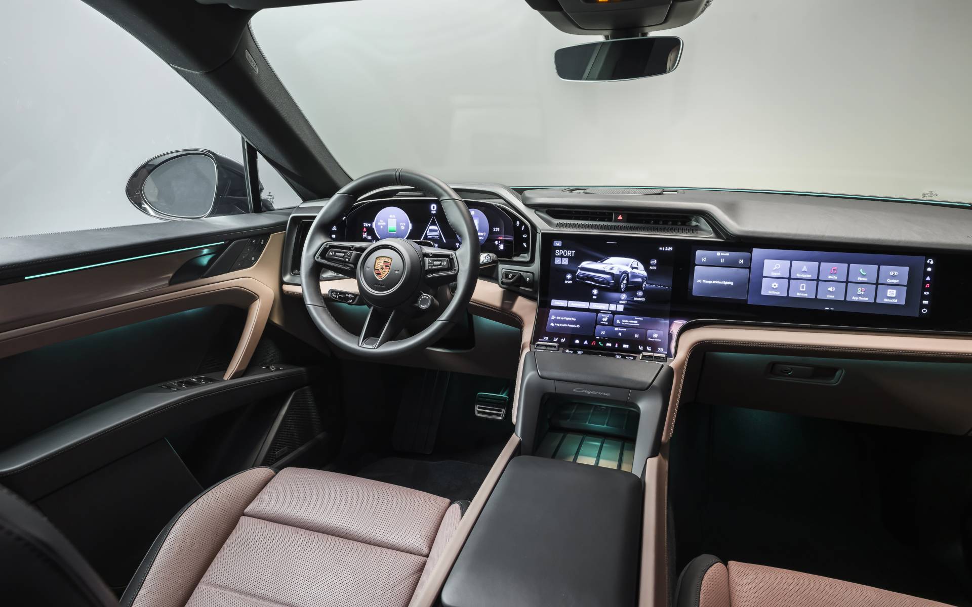 Once inside, all eyes immediately turn to the 14.25-inch digital instrument cluster and the new 12.25-inch curved OLED infotainment touchscreen, the latter requiring some getting used to. The good news is that Porsche has opted for a combination of physical and digital controls ensuring both ease of use and a clean layout. A 14.9-inch passenger-side display is also available as an option. Just like the Macan Electric, the Cayenne Electric features an augmented-reality head-up display—quite nice and fairly useful once the learning curve is complete.