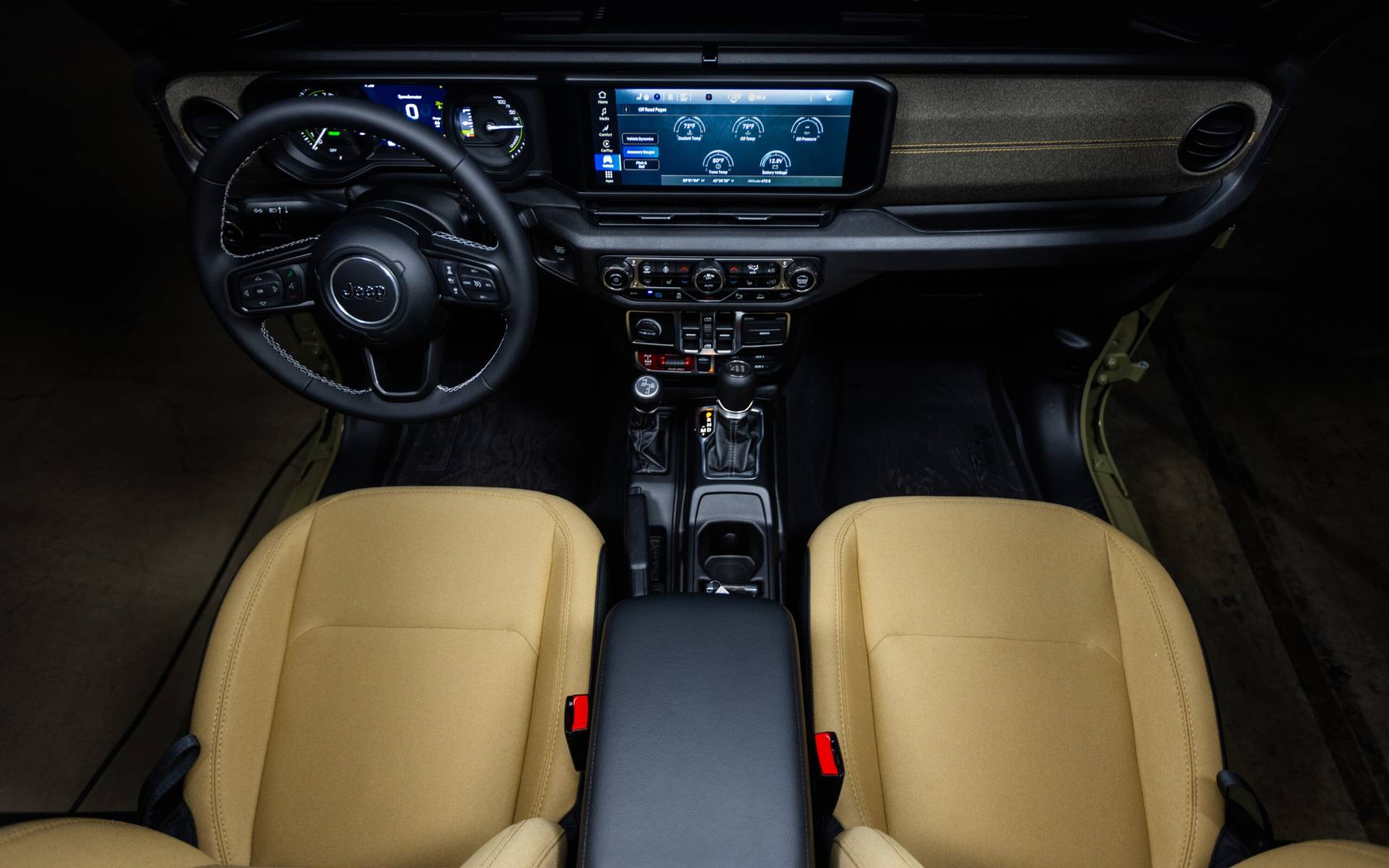 Inside, you’ll find Willys ‘41 tan seat inserts and a Mantis Green cloth-wrapped mid-bolster.