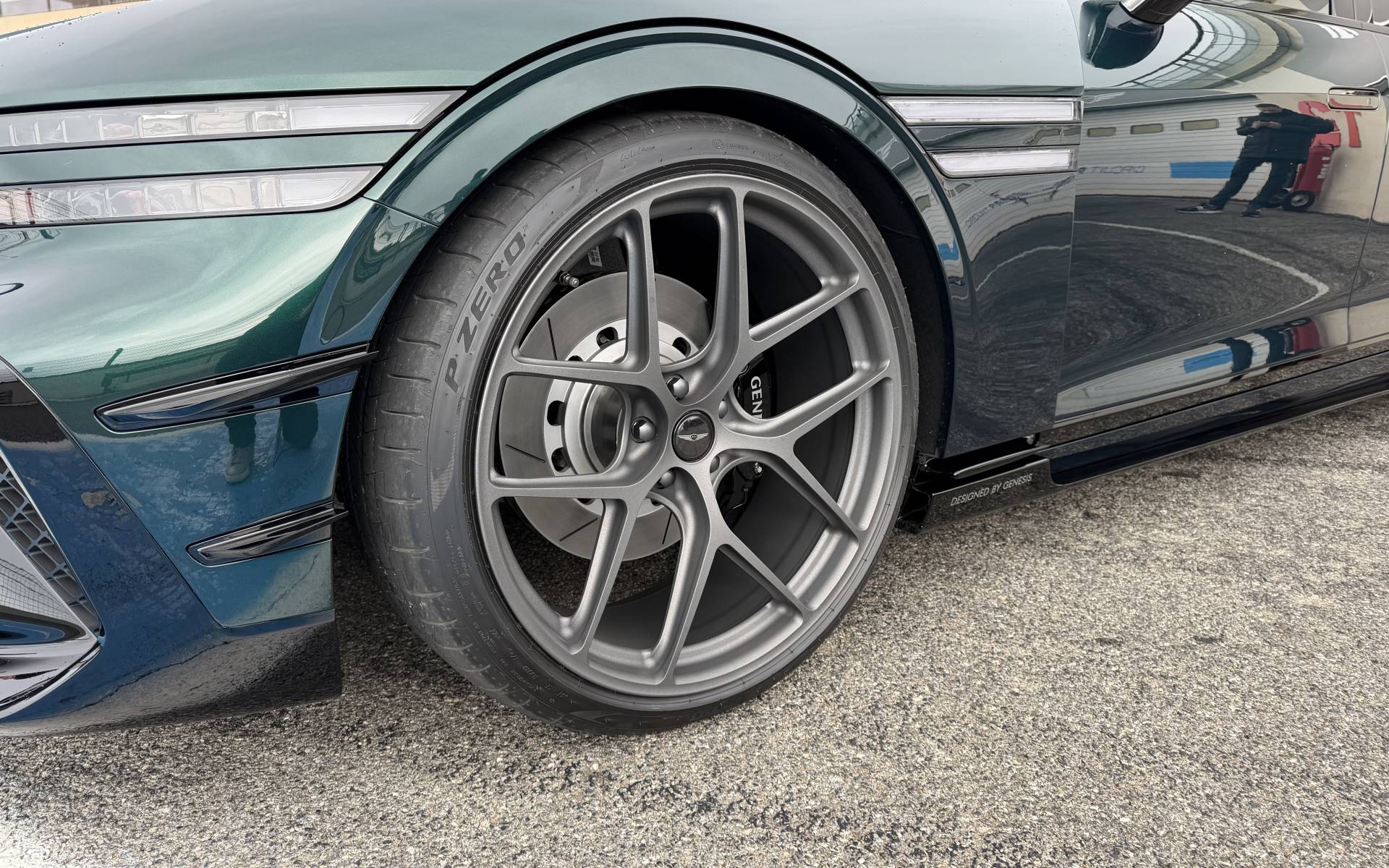 By the way, we received no technical information about this super wagon, which is finished in dark green and riding on huge 22-inch wheels. You won’t find it anywhere on the Genesis media website, either, as it was never meant to the revealed. Will further details be shared in the coming weeks or months? Possibly. Seeing the enthusiasm of the 150 or so journalists on hand, the company has to give us more.