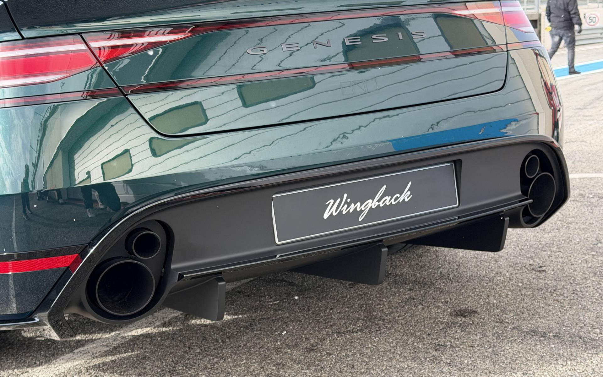 For now, however, we can tell you that the G90 Wingback is fully operational and that behind the dark-tinted windows lies a fully equipped and meticulously detailed cabin. Oh, and the exotic growl we heard from the quad tailpipes sounded awfully like that of a V8 engine—not a twin-turbocharged V6 with an electric supercharger such as the one motivating the standard G90. The aggressive exhaust note and the beefier brakes suggest that Genesis hasn't simply redesigned the body and called it a day.