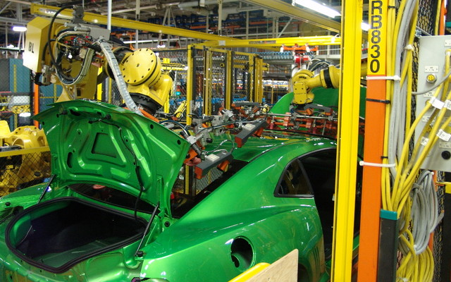 L’installation du pare-brise et de la lunette arrière. Les vitres latérales arrière et le toit ouvrant sont installés à un autre moment.