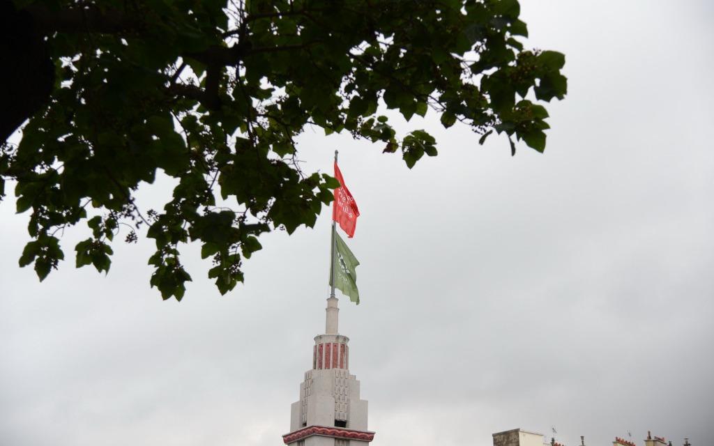 Paris - Mondial de l'auto 2012 - Il n'y a pas que les autos Publié le 30 septembre 2012 dans Paris par Denis Duquet Photo: Denis Duquet Pas de salon sans étendards