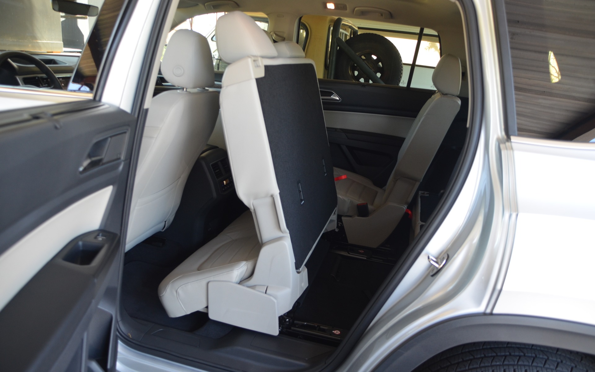 Pour laisser un passage vers la troisième banquette, le siège coulisse même si un siège de bébé est installé. Volkswagen recommande toutefois d'enlever le bébé avant de faire coulisser le siège...