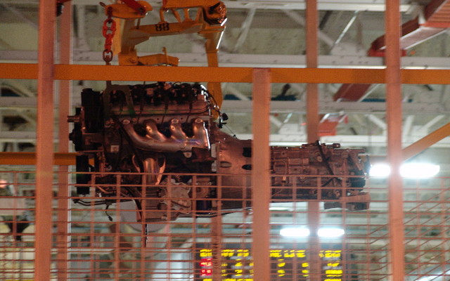 Ce V8, lorsque transporté par convoyeur dans les airs, ressemble aux moteurs de plastique (toujours trop petits) des modèles réduits!
