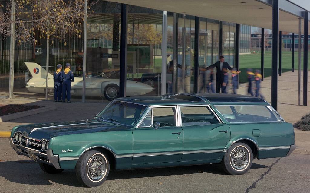 Oldsmobile Vista Cruiser Custom (avec le prototype Firebird I de 1954 dans le fond)