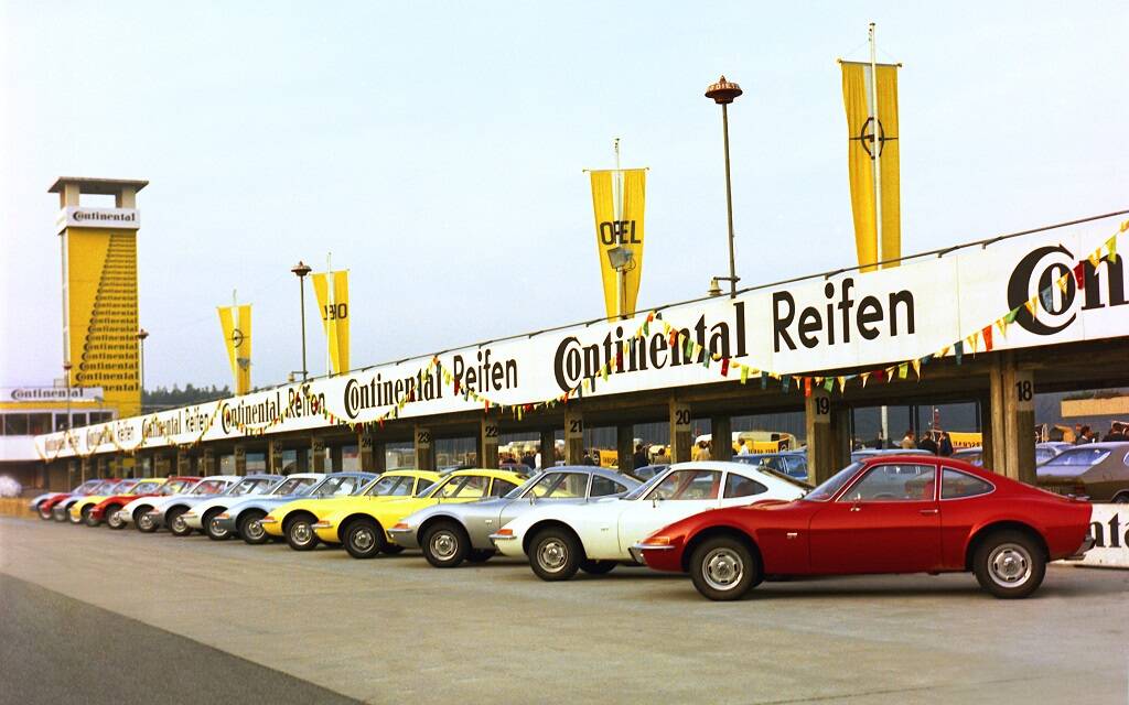 Présentation de l'Opel GT en 1968 sur le circuit d'Hockenheim